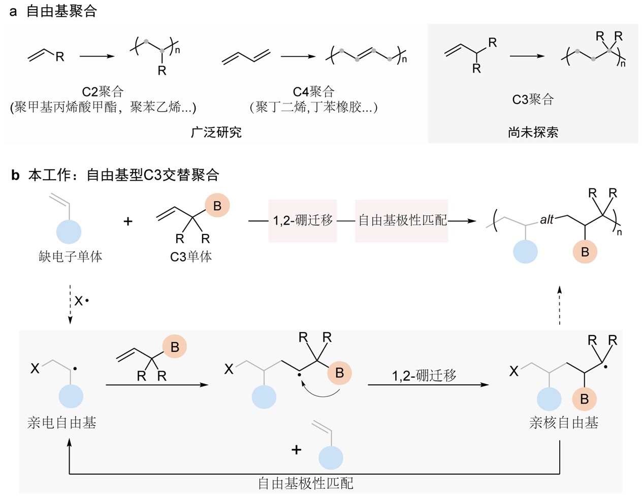 论文题目:Radical C3 alternating polymerization driven by 1,2-boryl migration via radical polarity matching